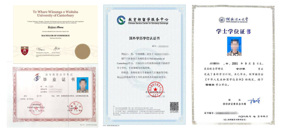 学生在国内学习期间,可同时报考成人高等教育专科或高等教育自学考试本科,如按要求完成课程学习,可获得相应学历,均为国家承认学历,证书在教育部学信网上可查询认证,符合学士学位授予条件的,授予相应的学士学位证书。